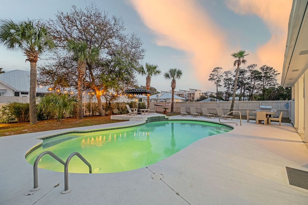Palm Royale is a beautifully remodeled 4-bedroom, 3-bathroom retreat, offering the perfect blend of luxury and coastal charm. This spacious two-story home features a private pool (with heating options for cooler months) and a complimentary 6-seater LSV for easy access to nearby beaches and attractions. With 3 king-sized bedrooms and a fun bunk room for the kids, the home offers plenty of room to relax in style. The living area exudes a boho coastal vibe, while the dining area has plenty of room for large groups. The modern kitchen boasts a quaint breakfast nook flooded with natural light. From scenic nature trails and outdoor adventures, this home is surrounded by the beauty of several state parks, offering opportunities for hiking, wildlife watching, and beach exploration. With delicious local dining spots like Gallion’s and Goatfeathers just around the corner, Palm Royale is the perfect base for an unforgettable vacation filled with relaxation, adventure, and coastal beauty.