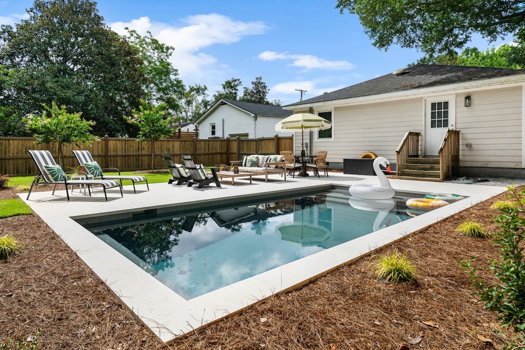 This spacious and newly renovated four-bedroom home just outside of Charleston is the perfect retreat, now featuring a brand new private pool with sun loungers for the ultimate relaxation. Inside, the open-concept living area is bright and welcoming—ideal for gathering with family or friends—while the fully equipped kitchen has everything you need to prepare meals at home. Each bedroom is tastefully decorated with cozy beds, generous storage, and large windows that fill the space with natural light, offering a comfortable and stylish stay for every guest.