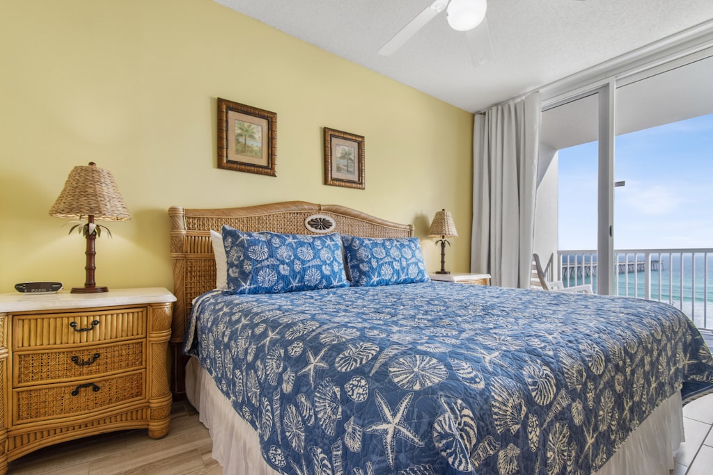 The primary bedroom features a king-sized bed, flat-screen TV, and an en suite bathroom with a tub/shower combo. Wake up to the sight of dolphins playing in the surf from your gulf-front balcony. The second bedroom also has a king-sized bed, a flat-screen TV, and an adjoining bathroom with a tub/shower combo.