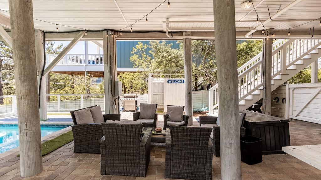This beautiful home is situated just less than a 3-minute’s walk from the emerald green waters of Seacrest. Seacrest Paradise is located just north of 30A and in the Seabreeze community. This 4 bedroom and 4.5 bathroom comfortably sleep 13 guests. The primary bedroom boasts a walk-in shower with king size bed. The 2 guest bedrooms have queen size beds with a walk-in shower. The bunk bedroom has full over twin and twin over twin beds.