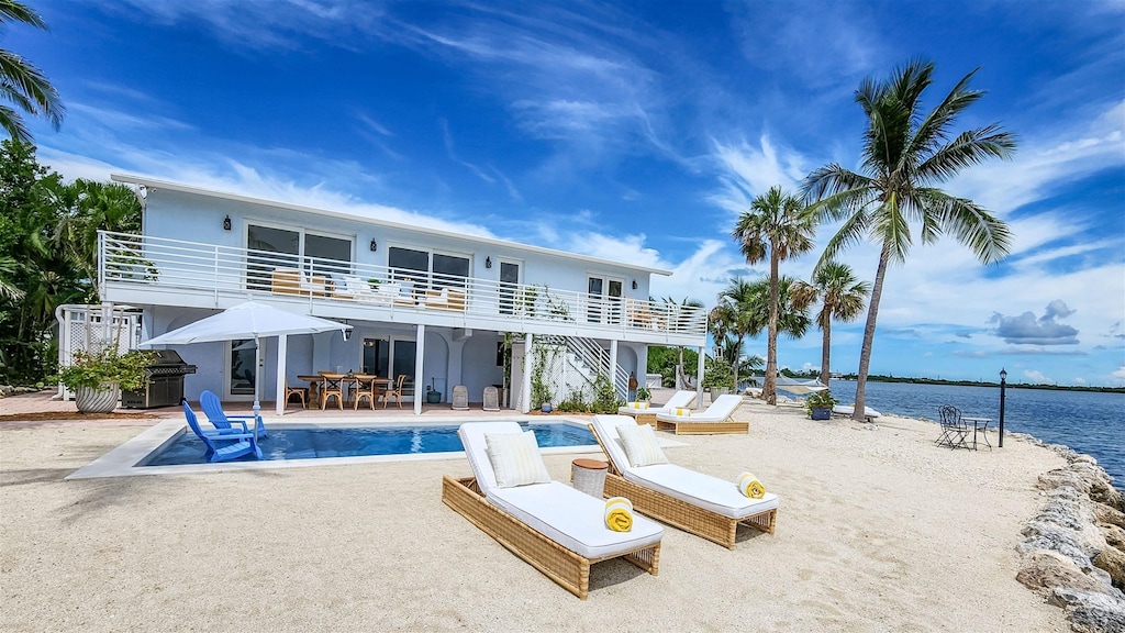 The private pool is nestled on a sandy beach and surrounded by meticulously maintained grounds. Deep access to world class fishing and free dockage makes this house a boaters paradise!