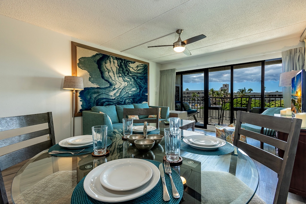 Step into C-507, your private island oasis. This 1 bed, 1 bath condo has been exquisitely updated and features a bamboo mattress (12/20) and custom made “beachy” décor and furnishings. #C-507 is the epitome of island living! Whether it’s a honeymoon, anniversary, birthday, or just a random Tuesday, the convenience and comfort of this condo is ideal for your romantic getaway. Grab your morning coffee and step out onto the private lanai to listen to the local birds sing while watching the sunrise over Haleakala. Or pour your favorite drink and settle in for sunset over the water then look to the night sky and stargaze from your cozy lanai loveseat. From this 5th floor lanai, take in spectacular views of the Pacific Ocean, Haleakala, Kaho’olawe Island and of course, glowing sunsets. During the winter months, you can see humpback whales.
