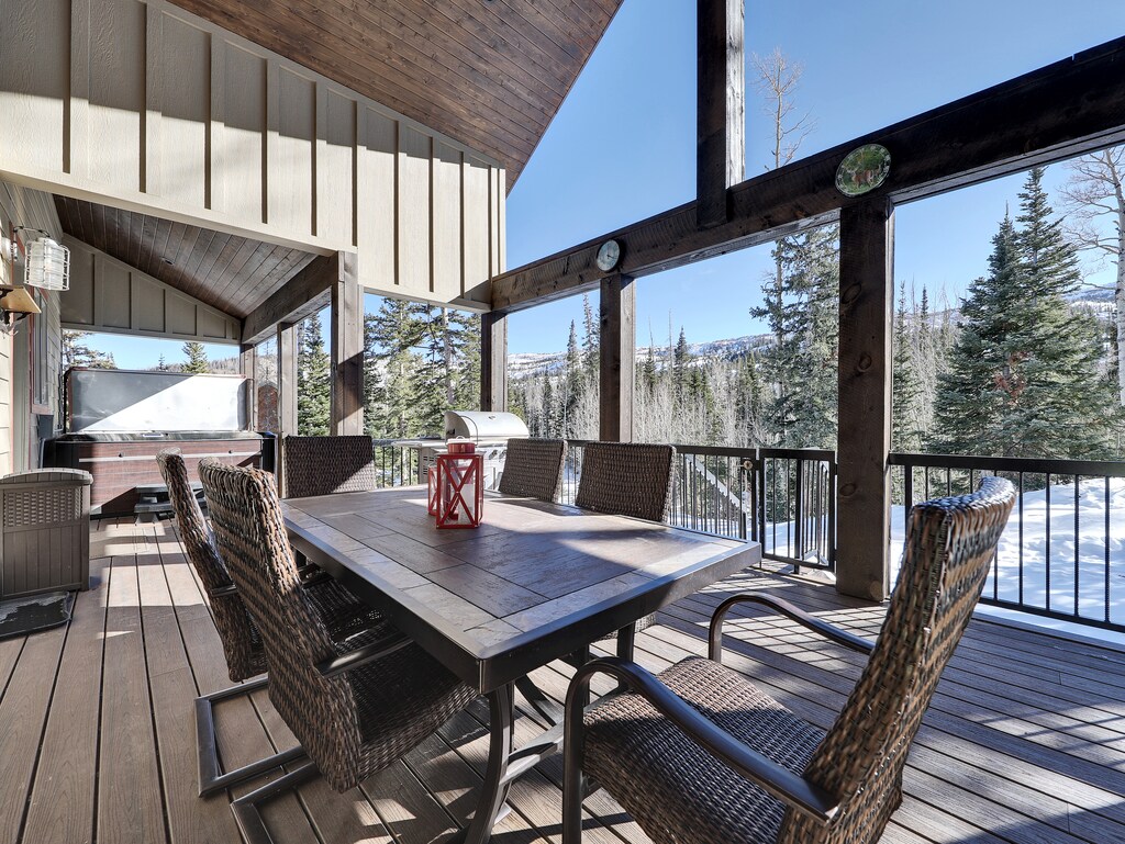 The fully equipped kitchen features modern appliances and a large dining area, perfect for group meals. Expansive living spaces provide cozy seating, ideal for movie nights or board games by the fire. The property includes high-speed Wi-Fi and streaming-enabled TVs for entertainment and private deck and patio areas with breathtaking views of Brian Head’s serene landscape.