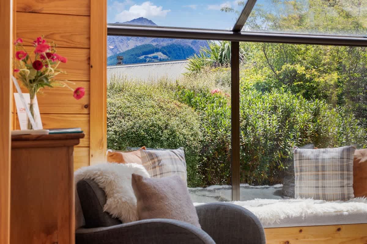 A fully equipped kitchen awaits, catering to both culinary enthusiasts and those seeking convenience. Modern amenities and sleek design make meal preparation a delightful experience. Not to mention the wide view of Lake Wakatipu to soak in while preparing meals. Unwind in a cozy living area, bathed in natural light and offering a welcoming atmosphere. Large windows provide panoramic views, bringing the beauty of the surroundings inside. Nestle yourself in the sun bed and enjoy a book while soaking in the sun.