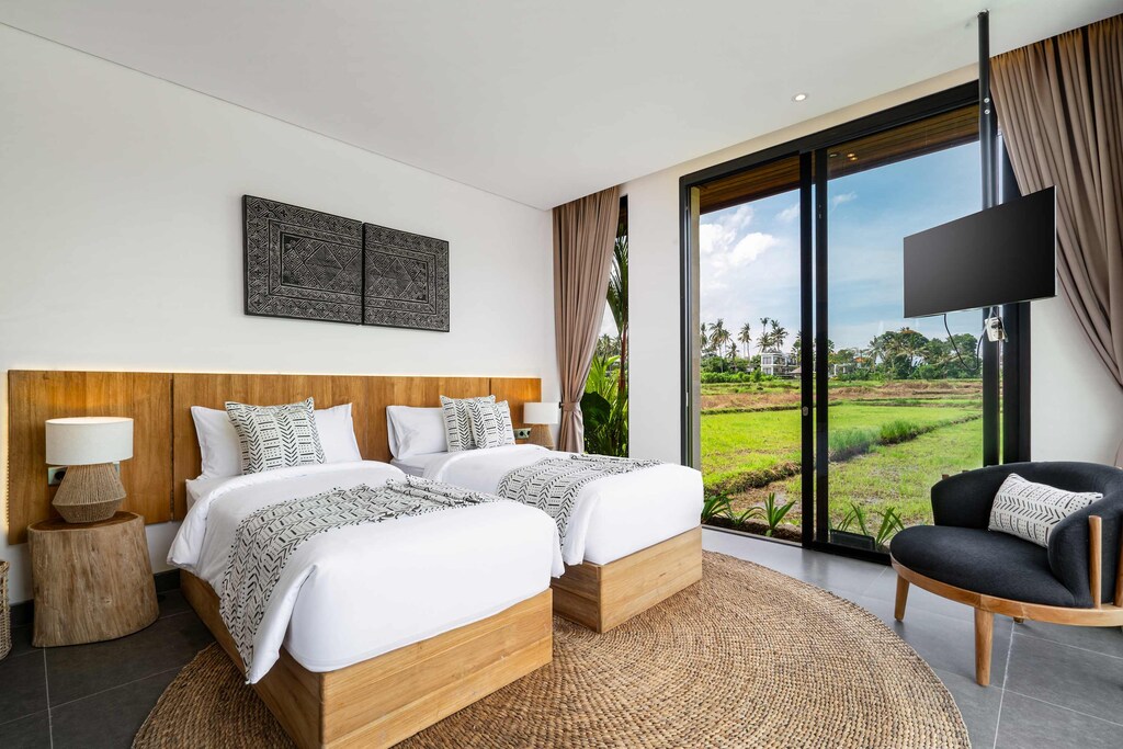 Welcome to Villa Lamai, nestled amidst the breathtaking rice fields of Singakerta, Ubud. This stunning 3-bedroom retreat offers a serene escape perfect for families or groups seeking a peaceful getaway. Boasting a modern design that blends seamlessly with its lush surroundings, the villa creates a comfortable yet elegant atmosphere. Just a short drive from Ubud Centre, you’ll be close to vibrant culture, art, and nature, while enjoying a secluded haven to unwind and reconnect.