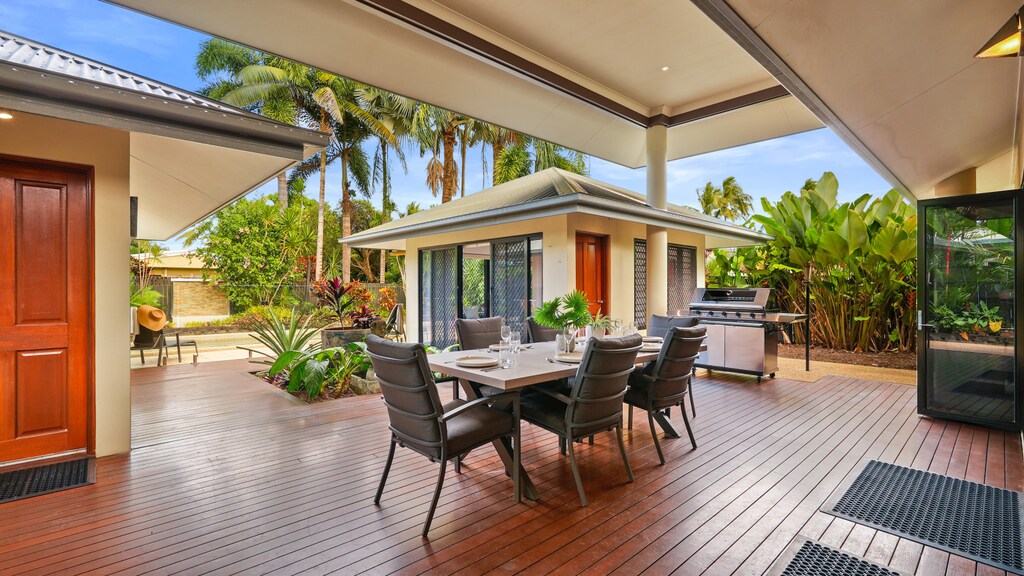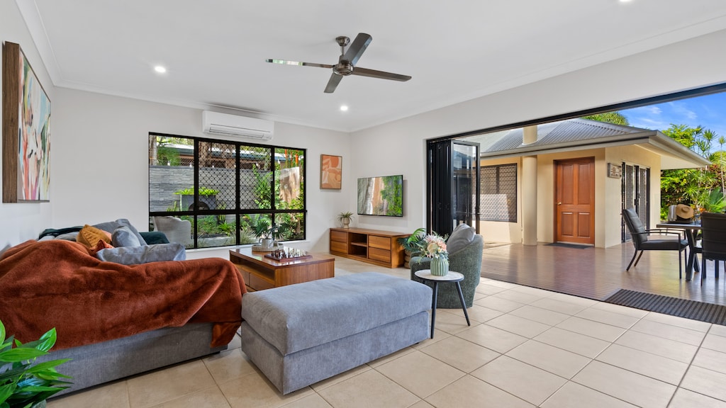 Step into your own private sanctuary at The Pavilion—a luxurious pavilion-style home located just one street back from the palm-lined sands of Trinity Beach. Thoughtfully designed for seamless indoor-outdoor living, this tropical retreat blends modern comfort with serene resort-style vibes—perfect for families, groups, or anyone seeking space, tranquillity, and the coastal lifestyle.