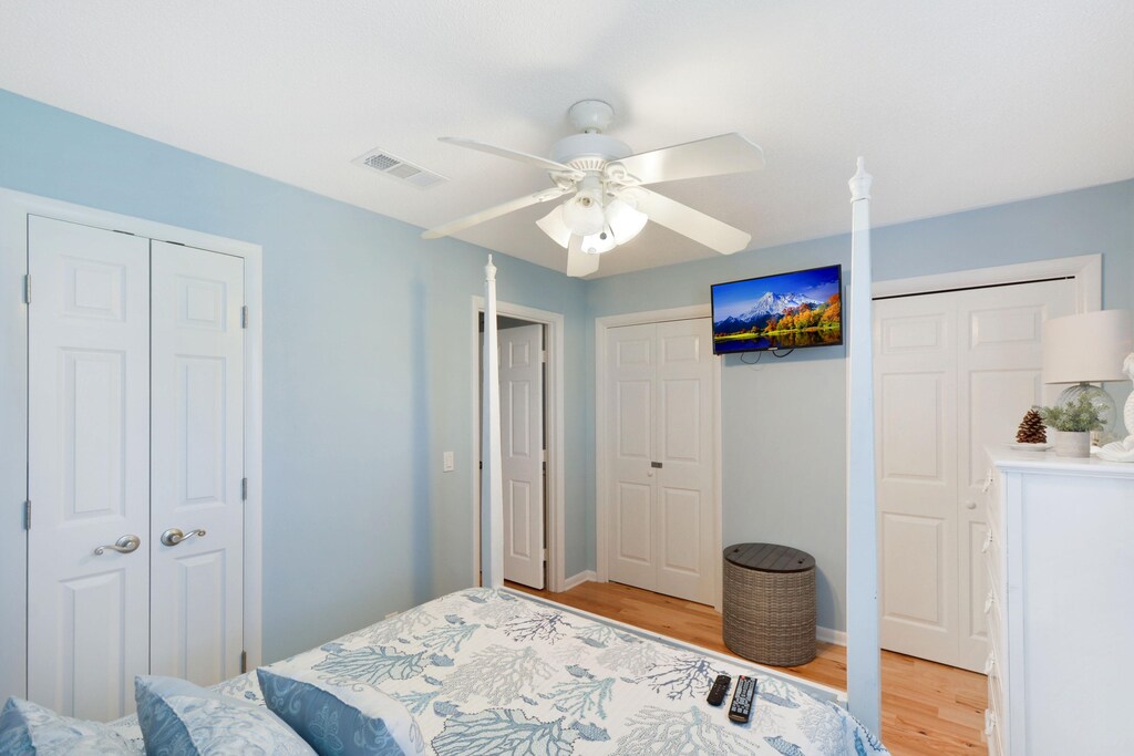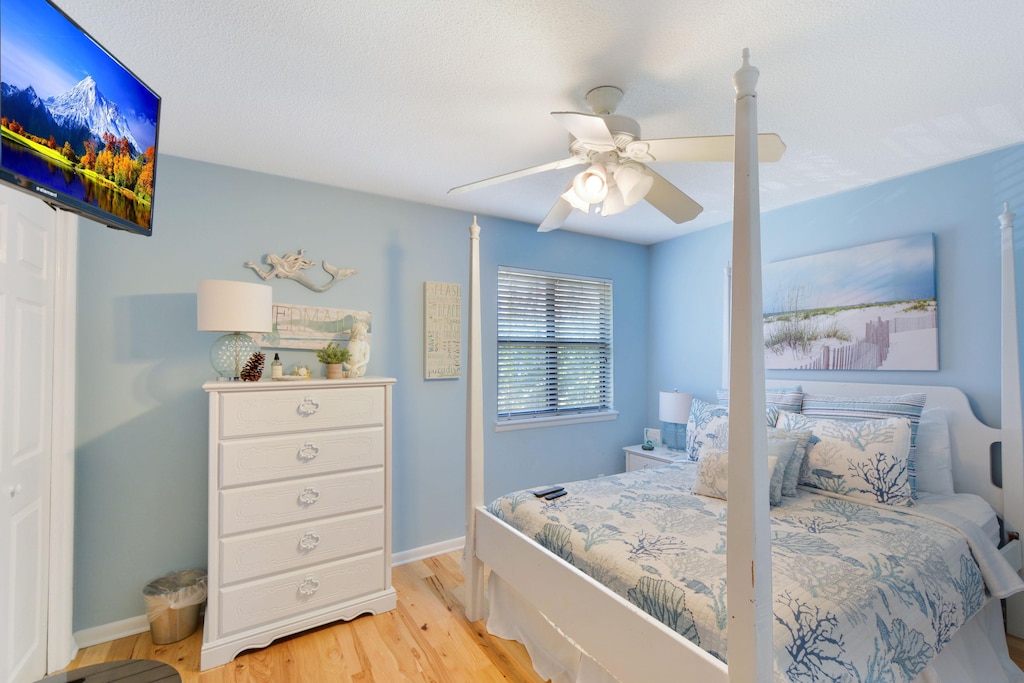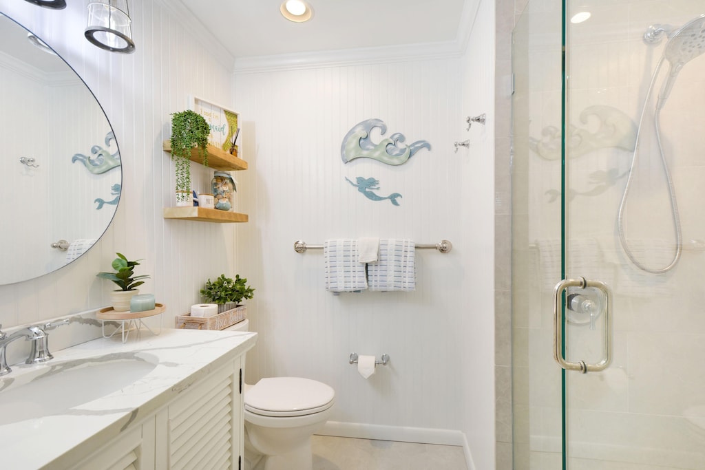 Fall in love with the Master bedroom with king bed and en-suite bath with new walk-in shower. Another guest room with a queen bed is located upstairs with a nearby new full bathroom with a new walk-in shower.