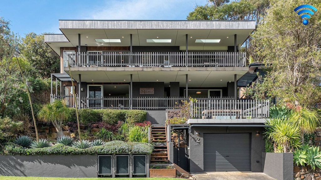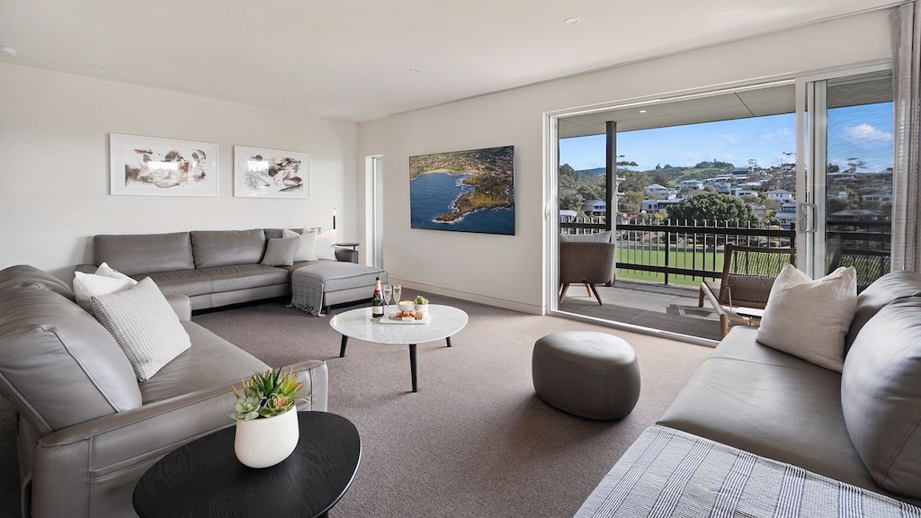 This beautifully appointed architect-designed split-level home is perfectly designed for families or groups looking for a spacious and comfortable holiday stay. Featuring four generous bedrooms, including a dedicated bunk room for kids or extra guests, the home also includes multiple bathrooms with bathtubs, convenient powder rooms, and a walk-in wardrobe. The chef’s kitchen and additional kitchenette make cooking and entertaining easy, while two large living rooms—each with a smart TV—offer plenty of space to relax. A designated office or study desk in the upstairs living space adds flexibility for anyone needing to work remotely.