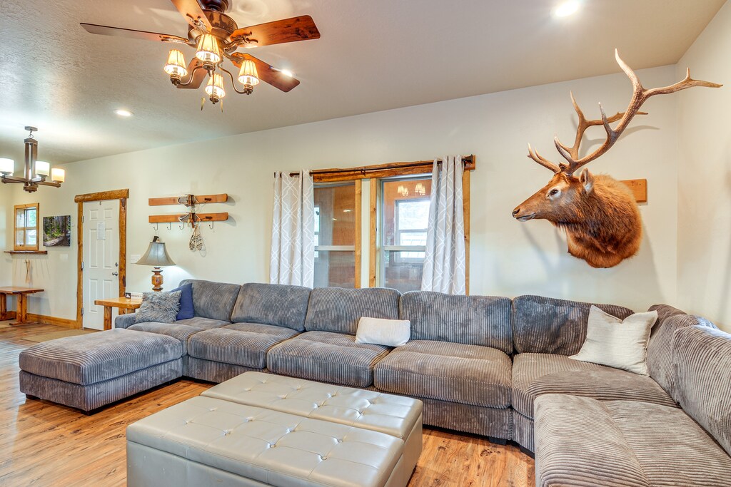 Whether you're chasing fresh powder or viewing all the fall leaves, this 6-bedroom, 6-bath Brian Head cabin has you covered. High-altitude fun kicks off the moment you arrive, with ski runs, bike trails, and alpine hikes all under 5 miles away. Back home, you can unwind in one of the cozy living spaces or on the deck around the fire. This property offers easy access to adventure, and a quiet and comfortable environment for remote work, too!