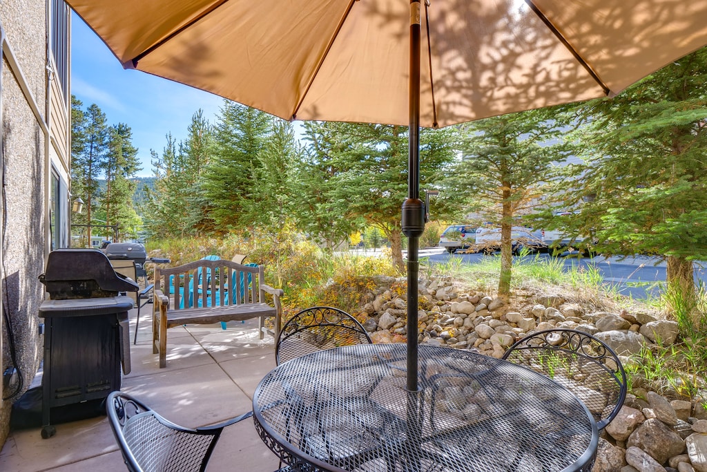 - Patio w/ outdoor dining & umbrella