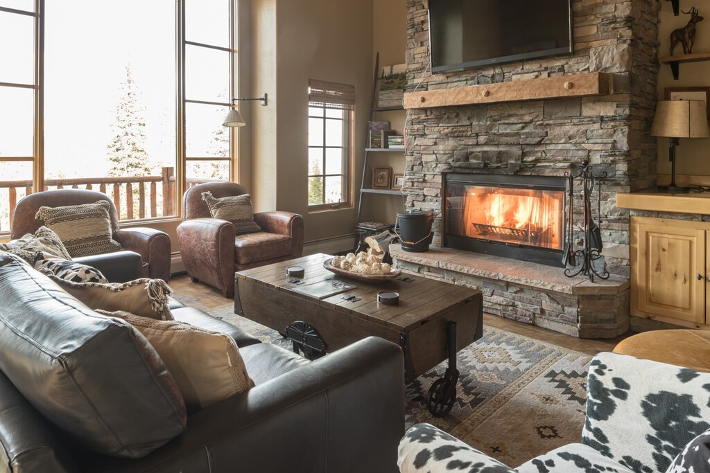 The first floor features a mudroom with benches and hooks for storing wet ski gear or dirty hiking boots, accessible via the back door. Spaced throughout this floor are 3 beautiful bedrooms—1 primary bedroom and 1 guest bedroom, both with king beds and private bathrooms, with the primary boasting a gas fireplace and patio. A bunk room completes this floor with a twin-over-twin and Captain’s bunk bed.
