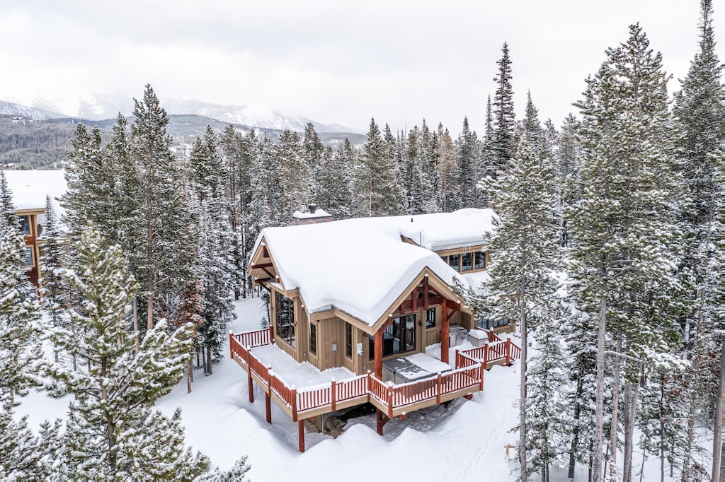 The main floor of this 3-story haven features a warm and inviting living space centered around a classic wood-burning fireplace and TV, perfect for relaxing or entertaining. This Moonlight Mountain Home stands apart from its neighbors with a beautifully remodeled kitchen sits adjacent to the living area and boasts top-of-the-line appliances, including a wine fridge for perfectly chilled bottles, a versatile crockpot for slow-cooked dinners, and a powerful Ninja blender for smoothies or cocktails. A dining area comfortably seats 6 for family dinners, while the breakfast bar seats 2 more for casual meals. The expansive deck features a high-quality propane grill that’s perfect for BBQs and a luxurious private hot tub for tranquil relaxation. After a day of adventure, easily retire to the guest bedroom on this floor and unwind on the plush queen bed or window bench. Outdoor enthusiasts will love the converted garage, which is now a spacious mudroom for hiking and ski gear with a laundry room nearby.