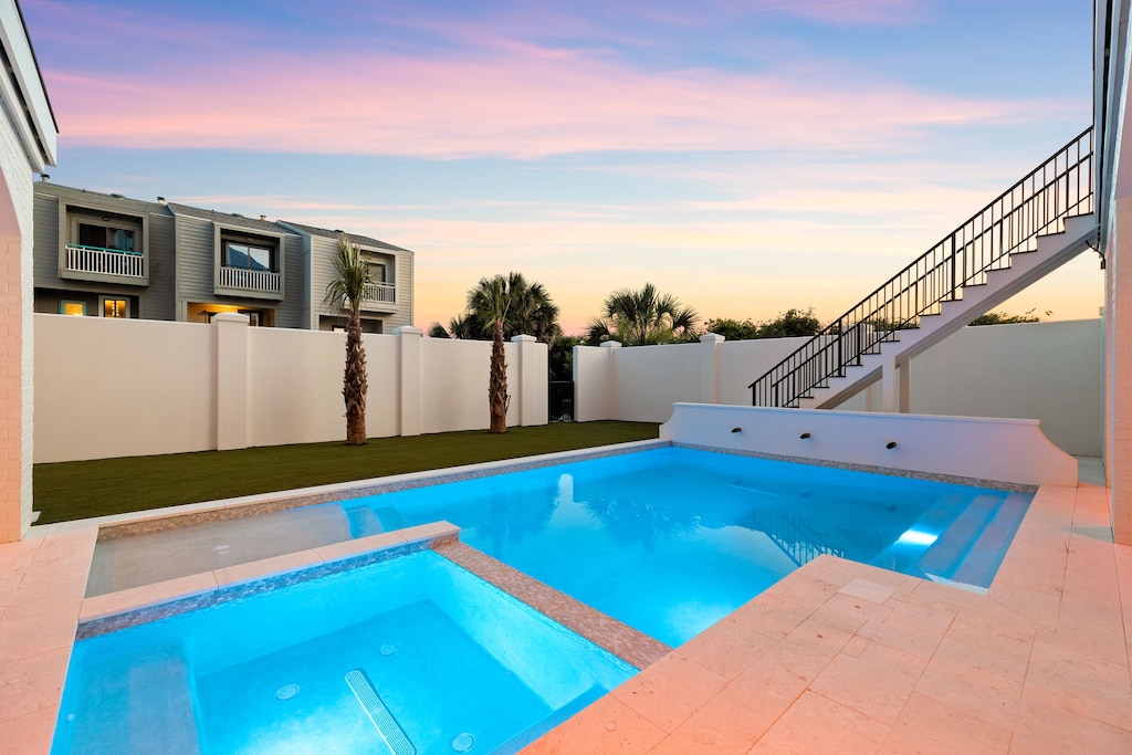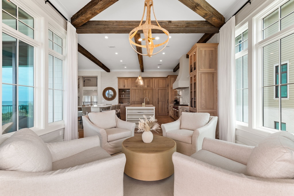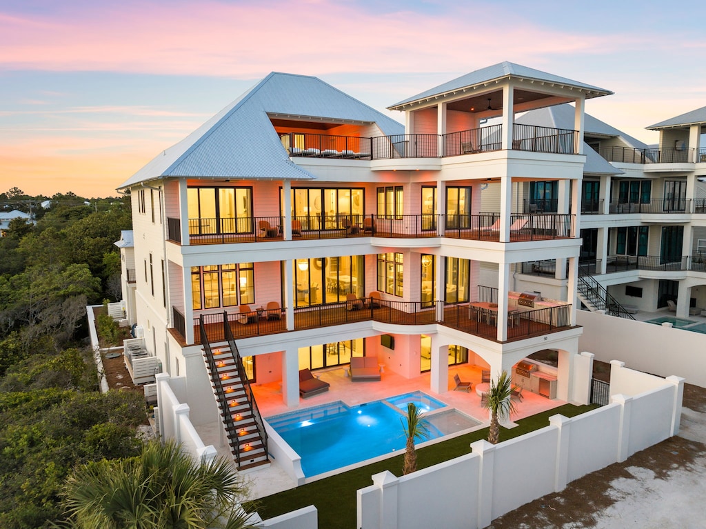 DETAILS: Experience unparalleled luxury at 50 Hinton-Bishop Drive with complimentary beach chair service for 2 every morning, situated in the coveted Seagrove Beach community. This exquisite 10-bedroom, 10.5-bathroom Main House—plus Carriage House—accommodates 26 guests along the stunning Emerald Coast, only 1 minute from the beach. Revel in the private saltwater pool and spa, savor late-night cocktails on the rooftop deck, and unwind with stunning views from balconies on every floor.