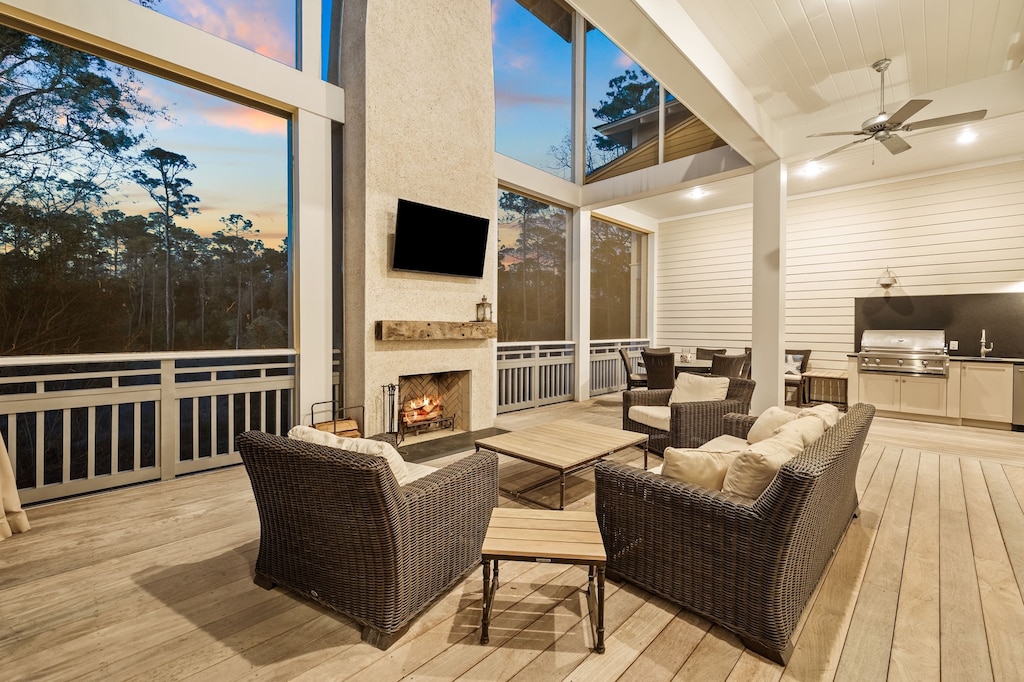 DETAILS: Welcome to 102 Vermillion Way, a beautiful 4-bedroom, 4.5-bathroom WaterColor home sleeping 12 guests. Paddle across sparkling Western Lake or take a leisurely bike ride to the sugar-white sand beach. Guests enjoy all the amenities of this resort-style community, including tennis courts, community pools, and the famous WaterColor Beach Club! Designed for coastal living, spend quiet evenings around the outdoor fireplace and grilling in the Summer kitchen.