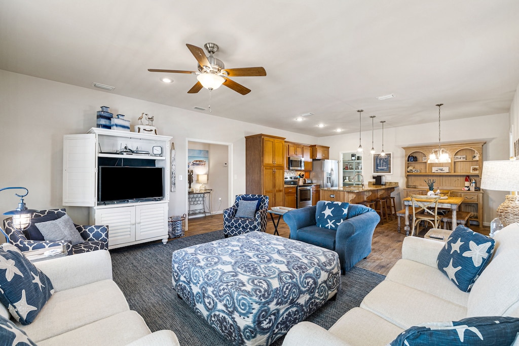 Beautiful, comfortable, private pool, extra parking, and just a short walk from the beach – all fully descriptive of Cottage at Surfside. Small groups, small families, or couples time away, this beach home will make your vacation dreams come true.