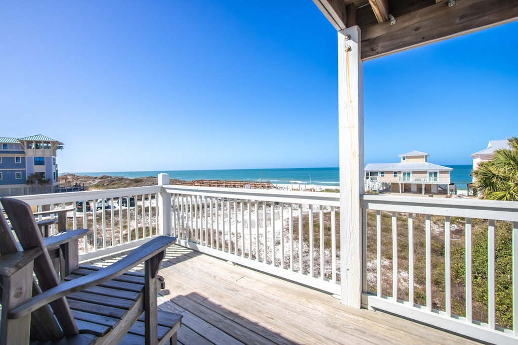 There is an expansive deck with Adirondack chairs and amazing views of the Gulf that can be accessed off the living area. This is the ideal place to enjoy your morning coffee, or a glass of wine in the evening!