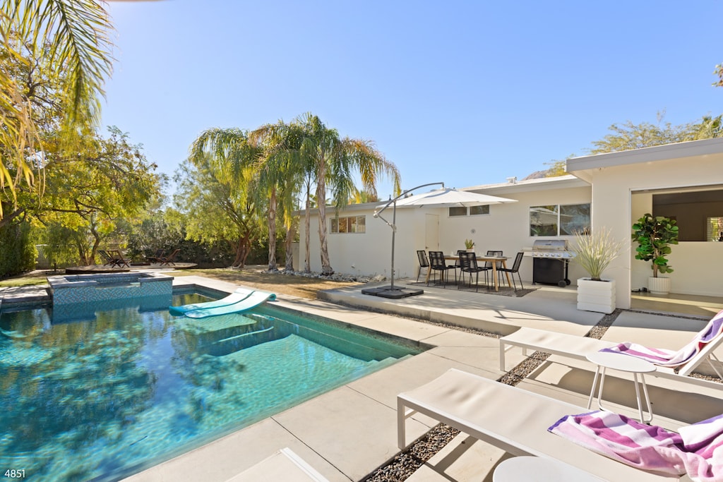 Just outside, you’ll find mountain views and a fence giving total privacy only 6 minutes from downtown Palm Springs and just 3 minutes from restaurants, bars and bakeries in the Racquet Club West neighborhood.