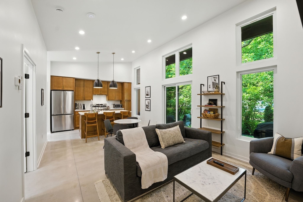 Enter the expansive living room, thoughtfully designed for relaxation and