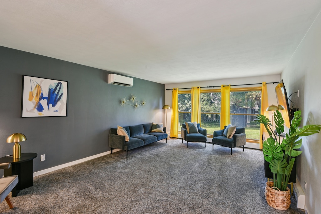 Relax in the bright and welcoming living room with plenty of seating, ideal