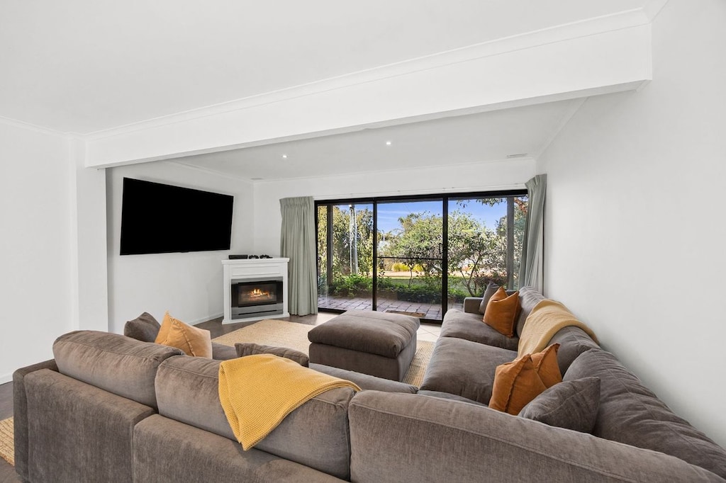 Light-filled interiors, open-plan living spaces, and floor-to-ceiling windows create a tranquil connection to the surrounding greenery. Guests can enjoy a fully equipped kitchen, two spacious lounge rooms with Smart TVs, and multiple indoor and outdoor living areas. Curl up by the fireplace, relax on the balcony with morning coffee and birdsong, or gather for a BBQ after a day exploring the Great Ocean Road.