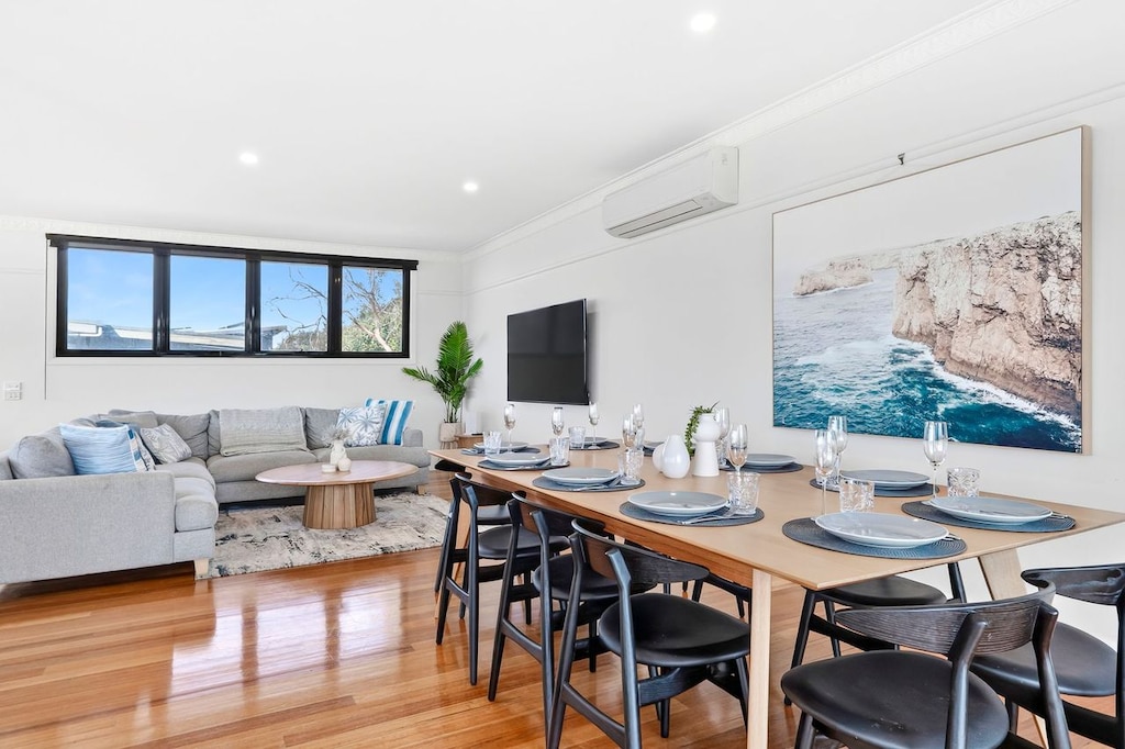 The four generous bedrooms stretch over the ground and split level and guests will enjoy two lounge areas with entertainment options and stunning ocean views. Air conditioning and a cosy fireplace provide year-round comfort, and the large deck is perfect for alfresco dining or winding down after a day at the beach.