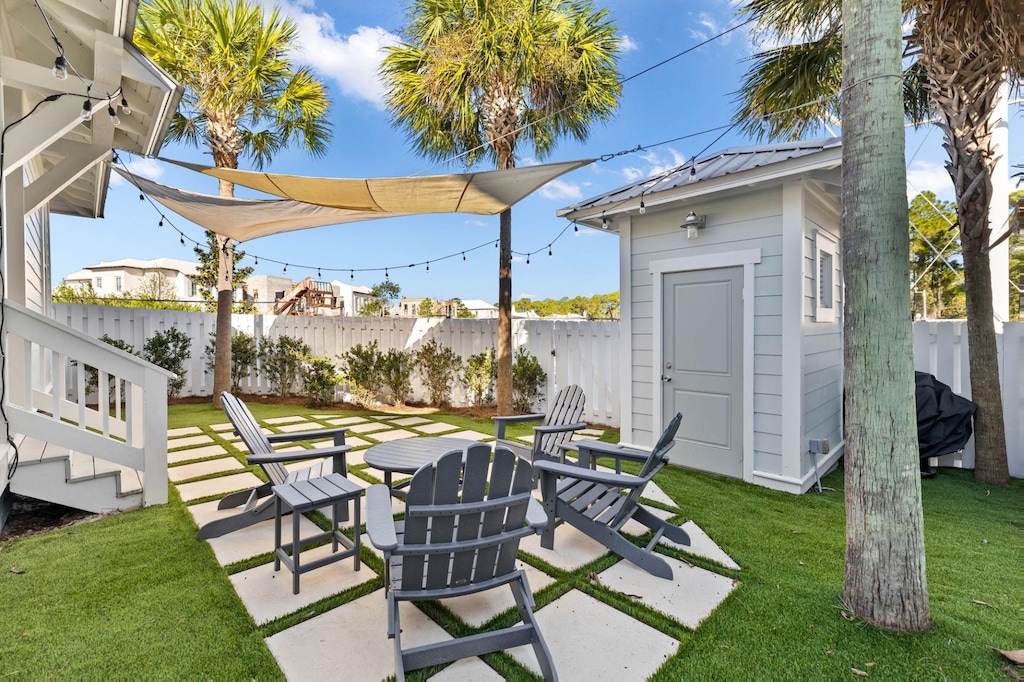 Clearwater Views offers a sophisticated and convenient Seacrest Beach escape. Exploring Scenic 30A’s beautiful communities and attractions is easy, with parking for 2 vehicles and 4 complimentary adult bikes. Beach access is located at The Villas at Sunset Beach—a short 11-minute walk away. Book this home for a beach escape today!