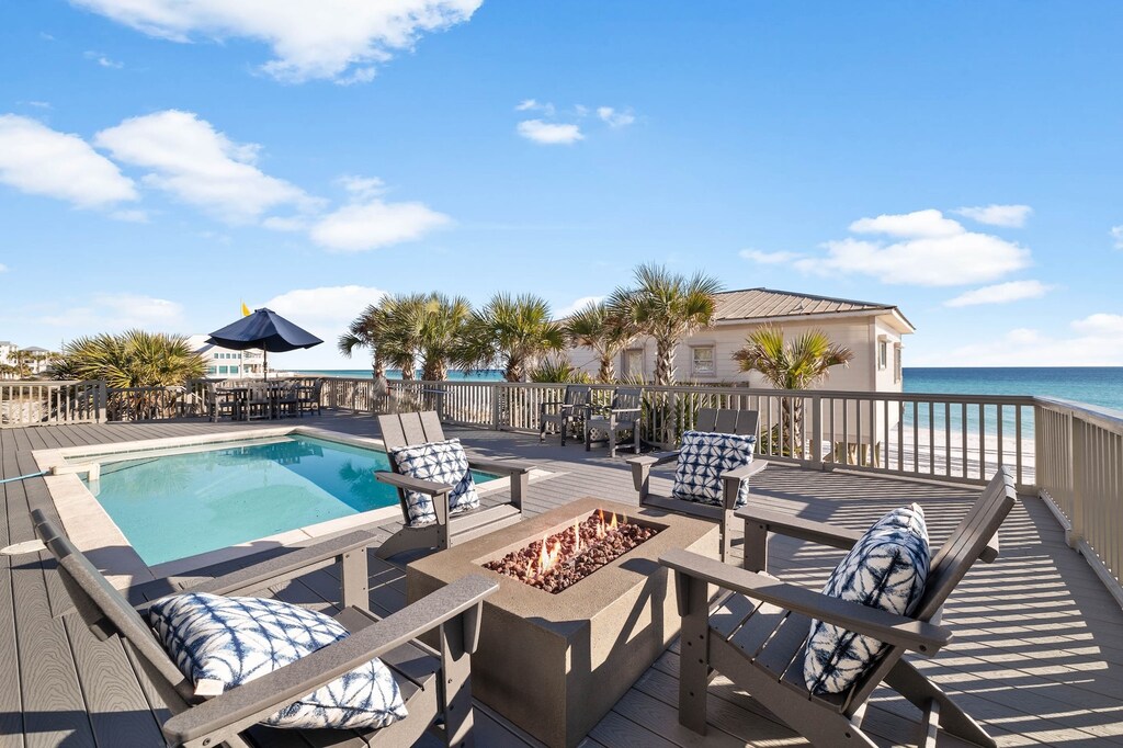 DETAILS: Dancing in the Sand is an incredible 5-bedroom, 4-bathroom Dune Allen home that sleeps 12. Guests will love the outstanding Gulf views, private pool, huge pool deck, 6-seater golf cart, private balconies, and luxurious finishes and thoughtful touches found throughout the home.