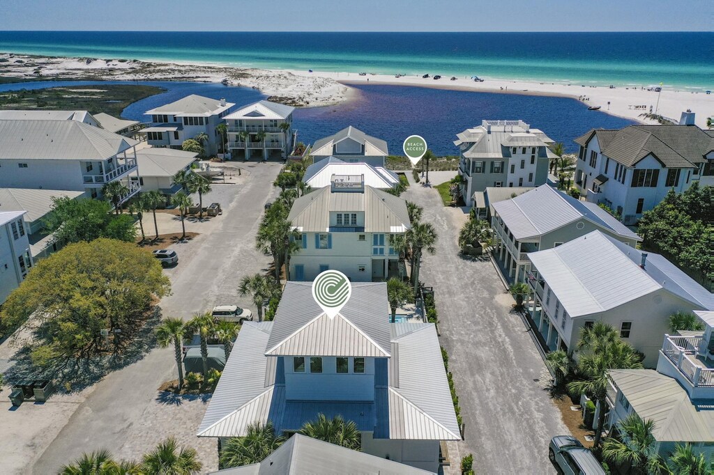 DETAILS: The aptly named "Grayton Bliss" is a 4-bedroom, 5-bathroom Gulf-view home that sleeps 12 in the heart of Grayton Beach. Guests will enjoy incredible Gulf views from a lookout tower and stunning views of a coastal dune lake and the surrounding Grayton Beach neighborhood from large windows throughout the home. 1 minute walk to the expansive public beach, pool, restaurants, Grayton Beach State Park, and shops.