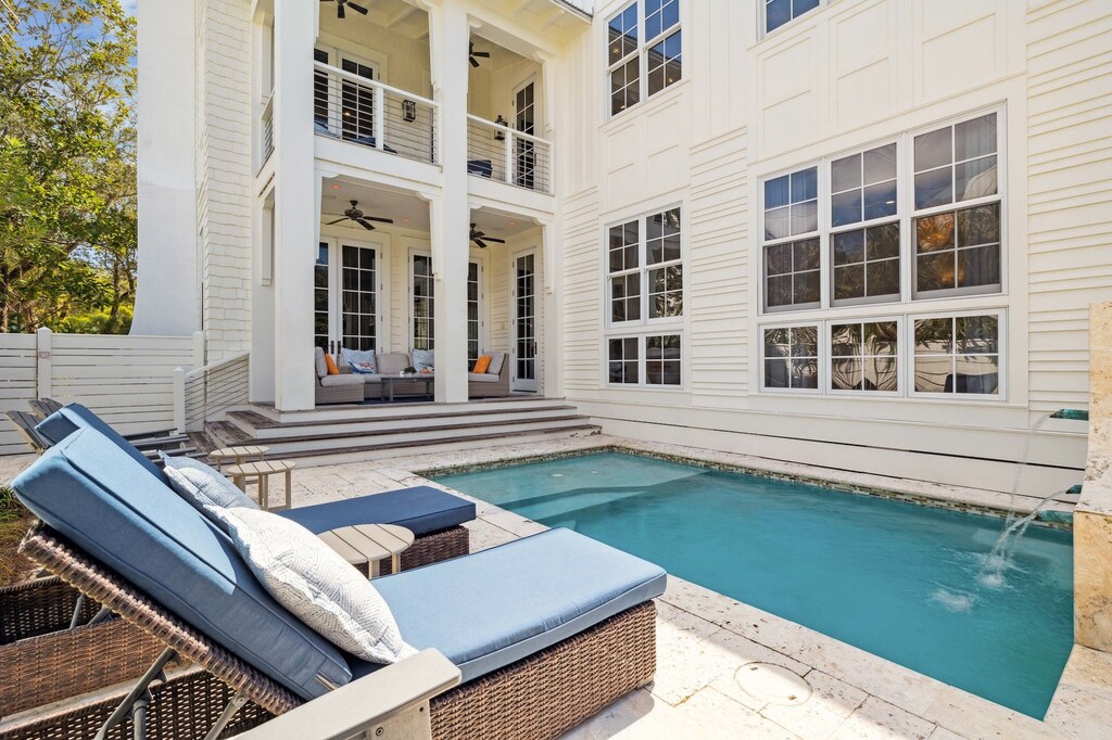 DETAILS: Tucked within beautiful Seagrove Beach, White Azaela offers an idyllic 30A getaway. This 4-level home easily accommodates up to 18 guests with 6 bedrooms and 5.5 bathrooms. Enjoy lazy, sunny days stretched out by the private pool or relaxing on the beach—only a 4-minute walk!