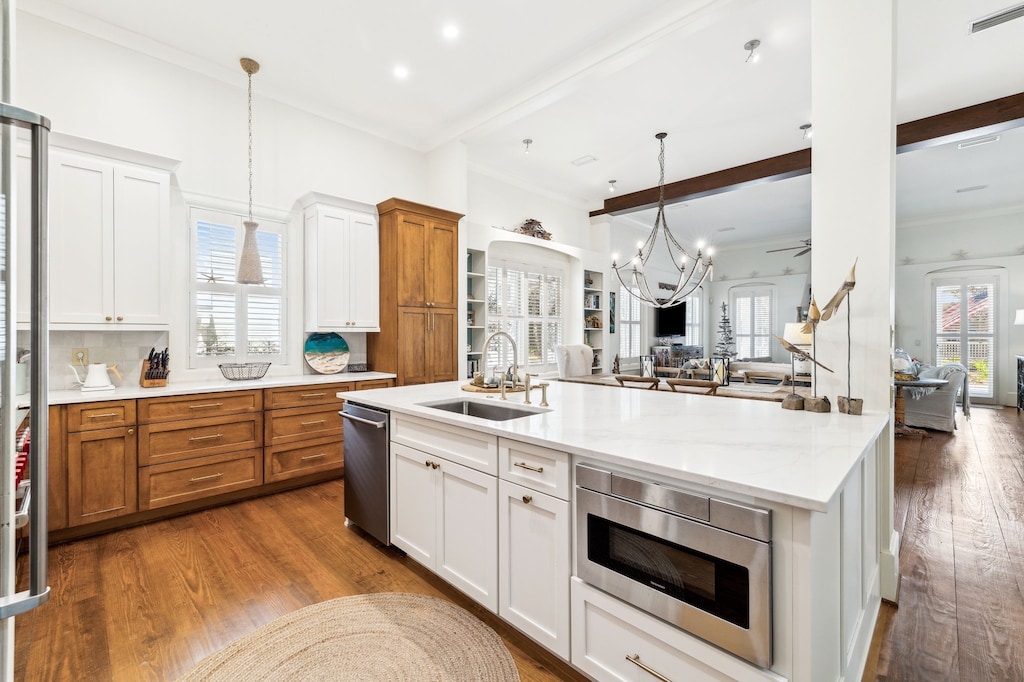 DETAILS: Impeccable design and rustic elegance are just a couple of the finer qualities that make up 92 Needlerush Drive, a corner lot home in world renowned WaterColor, Florida. This impressive two- story dwelling is comprised of three bedrooms, three bathrooms and a spacious carriage house making it the perfect vacation spot for multiple families. The first floor offers a fully appointed gourmet kitchen complete with stainless steel appliances and an open dining and living area that leads out to the fabulous screened porch spaces. The second floor features the primary suite and two guest bedrooms, each with their own private bathrooms. The carriage house provides an additional space for guests to stay and includes a kitchenette, private bathroom, and den area with a flat screen TV. Located near WaterColor’s Frog pool and a straight shot by bike to the Watercolor Beach Club, you’ll love the convenience of this home’s location. Plan to spend your next beach vacation at this spectacular home and experience all that 30A has to offer.