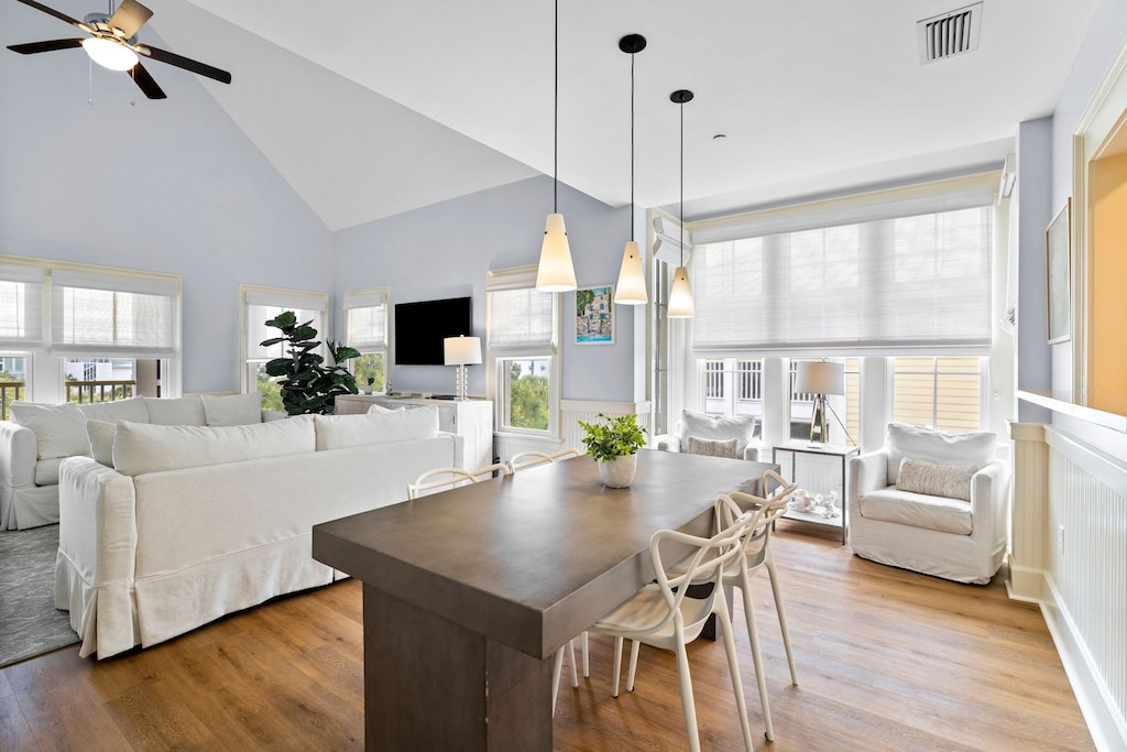 DETAILS: Enjoy Gulf views from the "Point of Vue" patio while breathing in the fresh salt air from your vantage point in WaterColor’s popular Park District. This adorable 1-bedroom with loft, 2 bathroom unit sleeps 4 and is close to the beach, the newly expanded WaterColor Beach Club, and Seaside. "Point of Vue" has newly remodeled bathrooms, new flooring, and a cottage coastal decor. The primary bedroom with a Smart TV, king bed and newly renovated private bathroom with walk in shower is tucked beside the kitchen - perfect for late-night snacks. The dining table flows into the living room boasting comfortable sofas, and oversized chairs surrounding a large Smart TV. This comfortable space provides family an area to share stories from the beach. Up a wooden staircase, perched high above the living room, is a cozy loft space with a full bed and sitting chair.