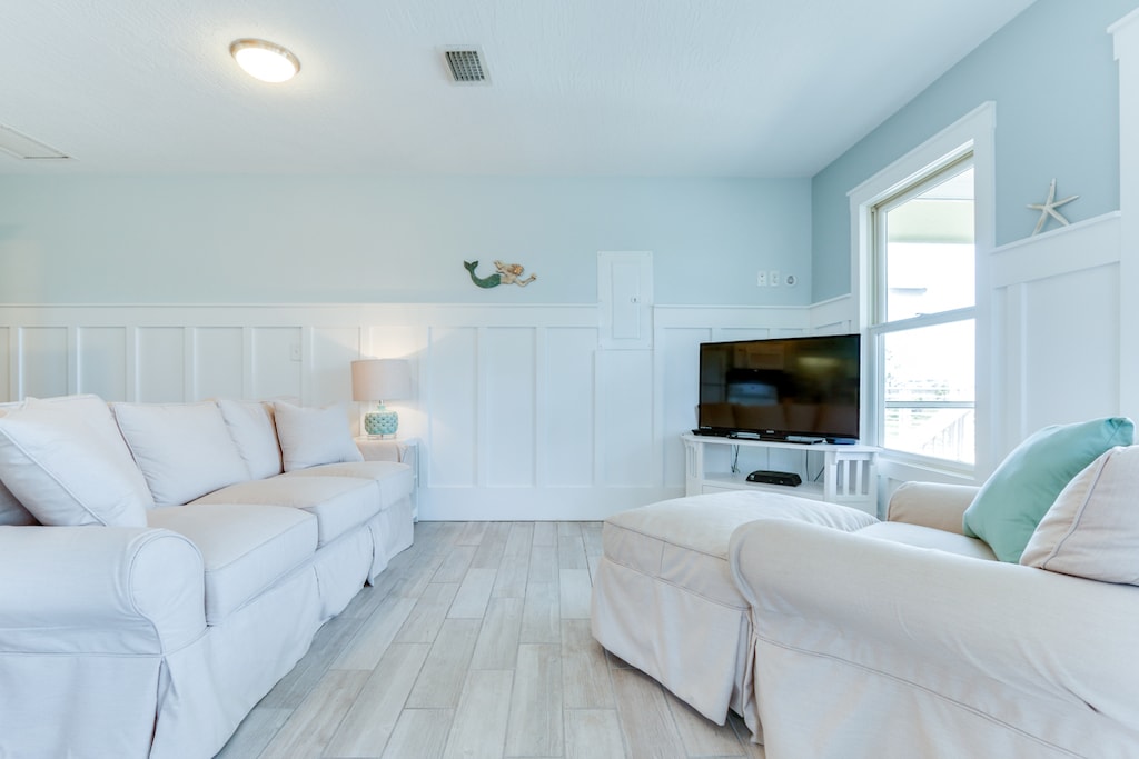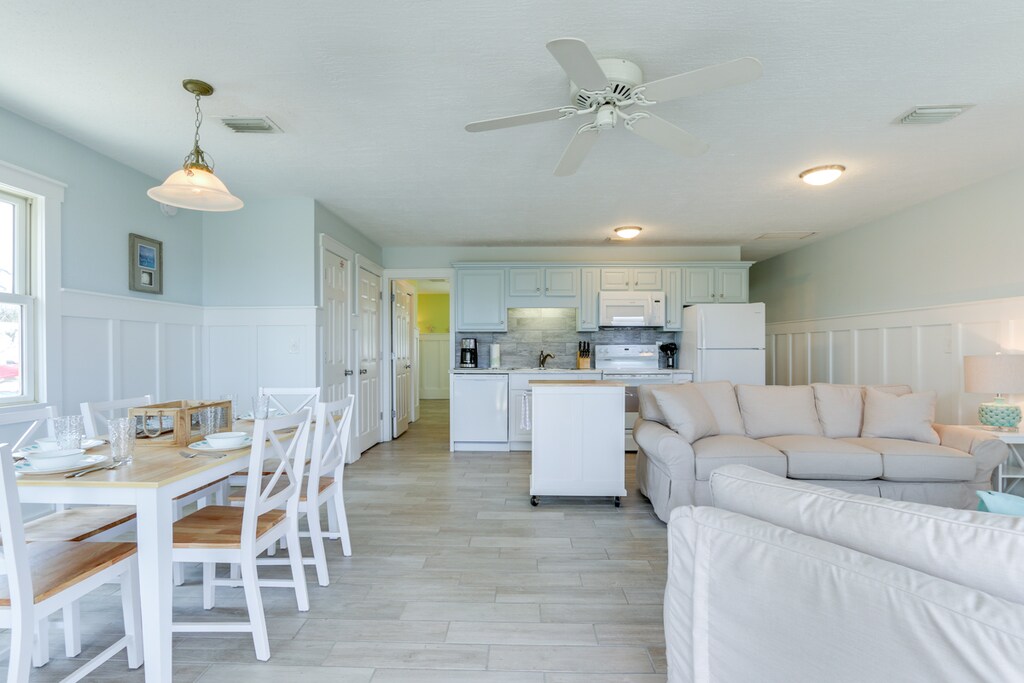This home is situated on beautiful St. Joe Bay with an amazing view! This home has two bedrooms with one king bed and a twin over queen in the bunk room. The cottage is just steps from one of the best bait and tackle shops on the Cape who will be happy to share all the secrets on how to catch local fish.