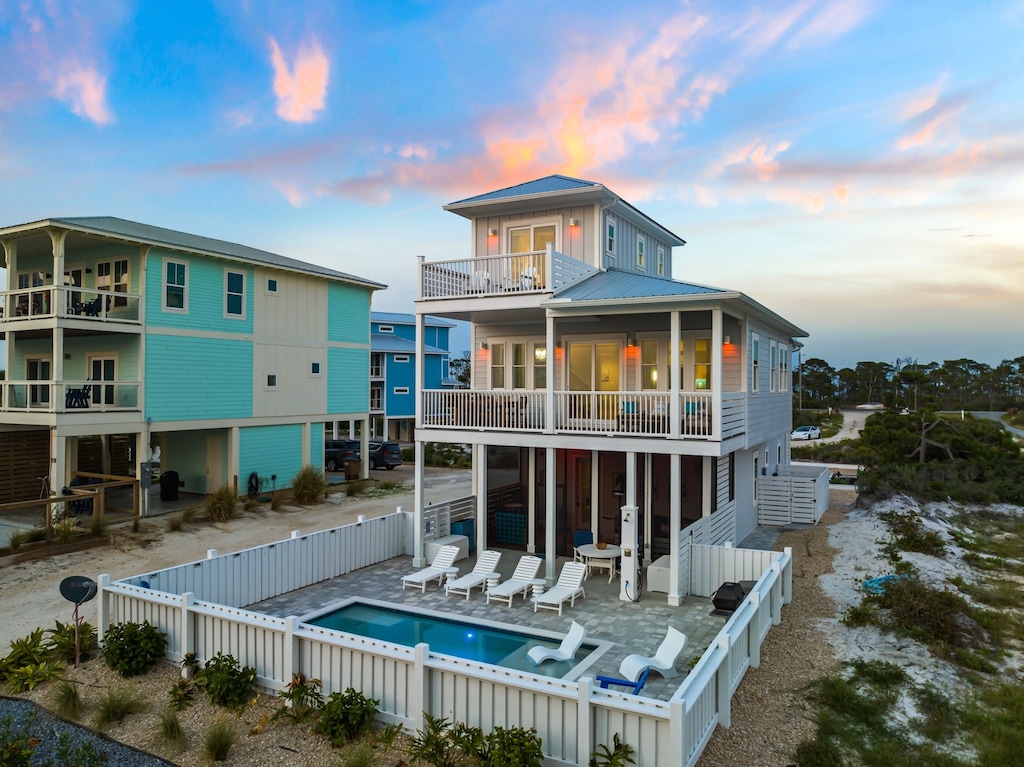 DETAILS: Flirty Flamingo is a newly built, Gulf-view, 4-bedroom, 4.5-bathroom home that sleeps 8 in the North Cape community of Cape San Blas. This home has an outdoor entertainment area with a private pool, screened-in porch, and a deck overlooking the Forgotten Coast. Follow the community boardwalk adjacent to the home for direct beach access, just steps away!
