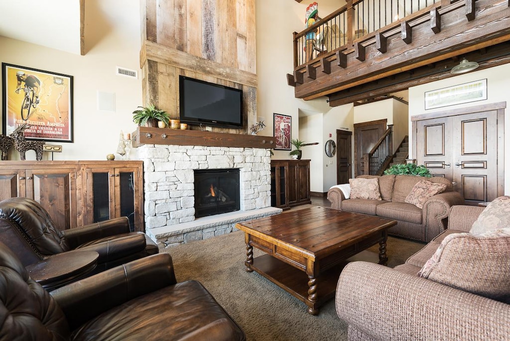 Enter this welcoming condo on the second floor. Cubbies at the entrance provide a convenient place to drop boots and outerwear. This level features a cozy armchair—perfect for a quiet night of reading—and a guest bedroom with a king bed. All the condo’s bedrooms have a TV and a private bathroom.