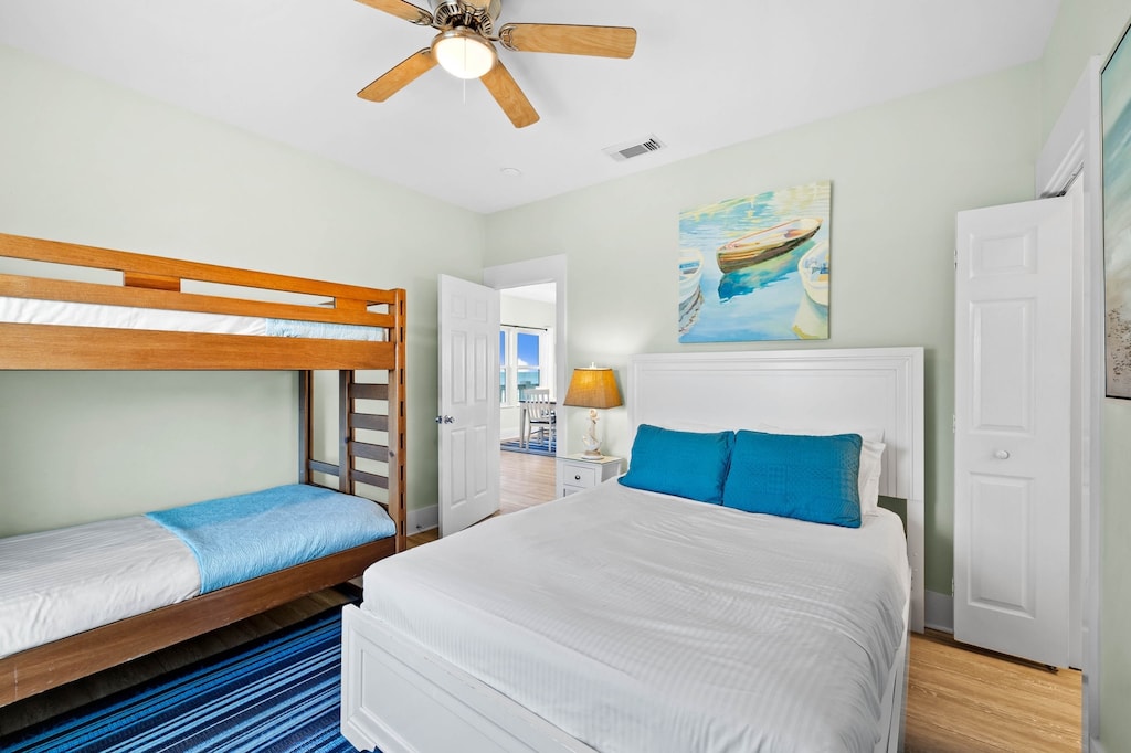 - Guest Bedroom: Queen Bed and Twin-over-Twin Bunk Bed, Shared Bathroom with Shower/Tub Combo