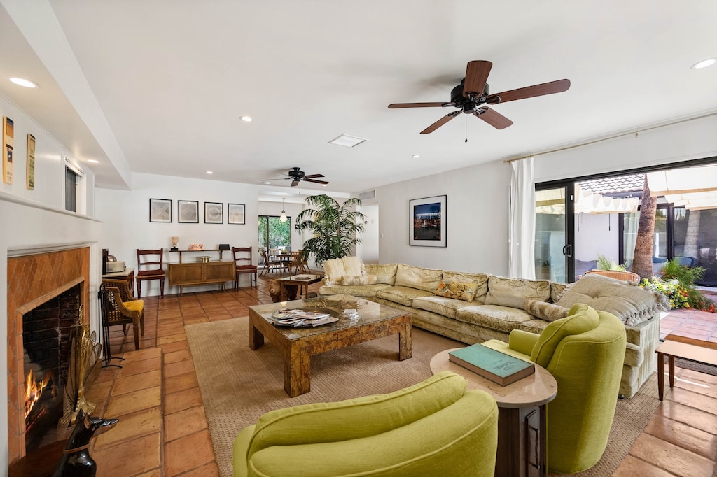 Follow the pathway to the front door of this spectacular home with incredible mountain views and inspiring retro vibes. Guests enter the well-lit living area, complete with a wood-burning fireplace and comfortable furnishings adorned with pops of vibrant green. Discover the Crosley record player and pristine albums on built-in shelves to enjoy timeless music—perfect for dancing! The nearby kitchen showcases high-end appliances and clean white countertops, making meal prep a breeze. A convenient washer and dryer is tucked away in the kitchen closet. Gather around the adjacent dining area’s wood table, which seats 5 friends and family. A media room, located off the kitchen, boats 2 recliners, a queen sleeper sofa, a 65" TV, and sliding doors leading to the front patio with an alfresco dining table for 6. After a long day, retire to 3 gorgeous bedrooms— 1 primary with a king bed, 55" TV, designated workspace, private bathroom with a bidet, and a glass slider that leads to the back yard, along with 2 comfy guest bedrooms boasting sizeable queen beds. Enjoy access to the expansive fenced-in back patio via the great room and primary bedroom, where guests can soak up in the sun in loungers before cooling off in the tiled shower and resting under the beautifully draped sunshade with plush outdoor furniture. Splash in the private pool with an attached sitting spa before sitting down to a BBQ dinner fresh off the 4-burner propane grill. It’s always a perfect day in Palm Springs paradise!