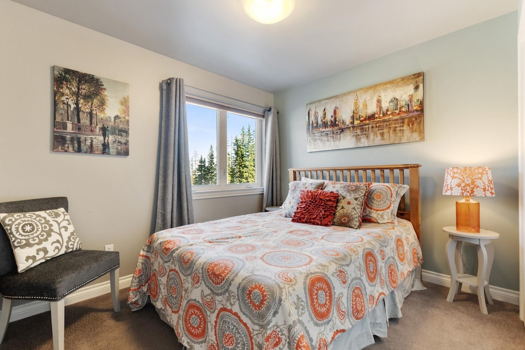 The large kitchen is fully equipped and opens to the living area, so guests can easily move between the 2 spaces. Gather around the 5-person dining table and eat beneath the picture window. When night falls, a guest bedroom with a queen bed and a sleeper sofa in the living room is on this floor. Additional sleeping accommodations are on the top and bottom floors.