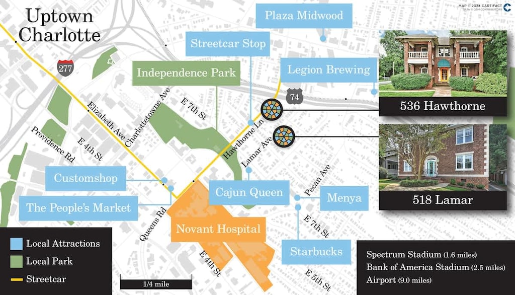 • CityLynx Streetcar: 0.2 mi / 5 min walk (direct to Uptown & Plaza Midwood)