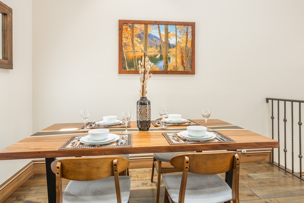 This townhome stands apart for its rare combination of space, privacy, and high-end details within Snowcreek V. An attached garage provides secure parking and protected gear storage — an uncommon advantage in Mammoth. The updated interior, quiet Fairway-side setting, and proximity to the meadows and golf course create a refined retreat that feels more residential than a typical rental and is ideally suited for guests seeking a higher-end Mammoth experience.