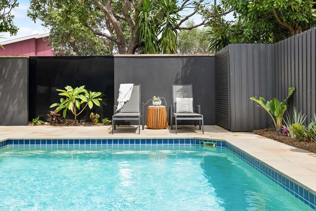 Enjoy indoor-outdoor flow with bi-fold doors that open onto the pool area. Bask in the sunshine, take a dip, or lounge poolside while taking in the calm surroundings.