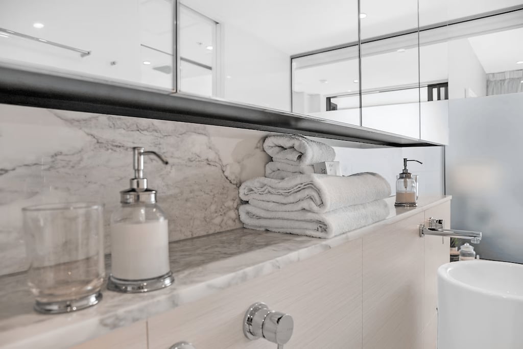 Bathrooms - two rolls of toilet paper, liquid hand wash and a quality bar of soap in each bathroom. Sunscreen, body lotion, shampoo and conditioner are available in the master bathroom.