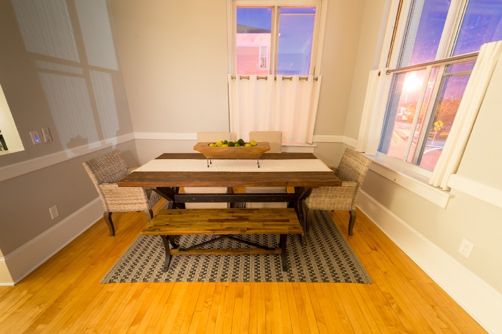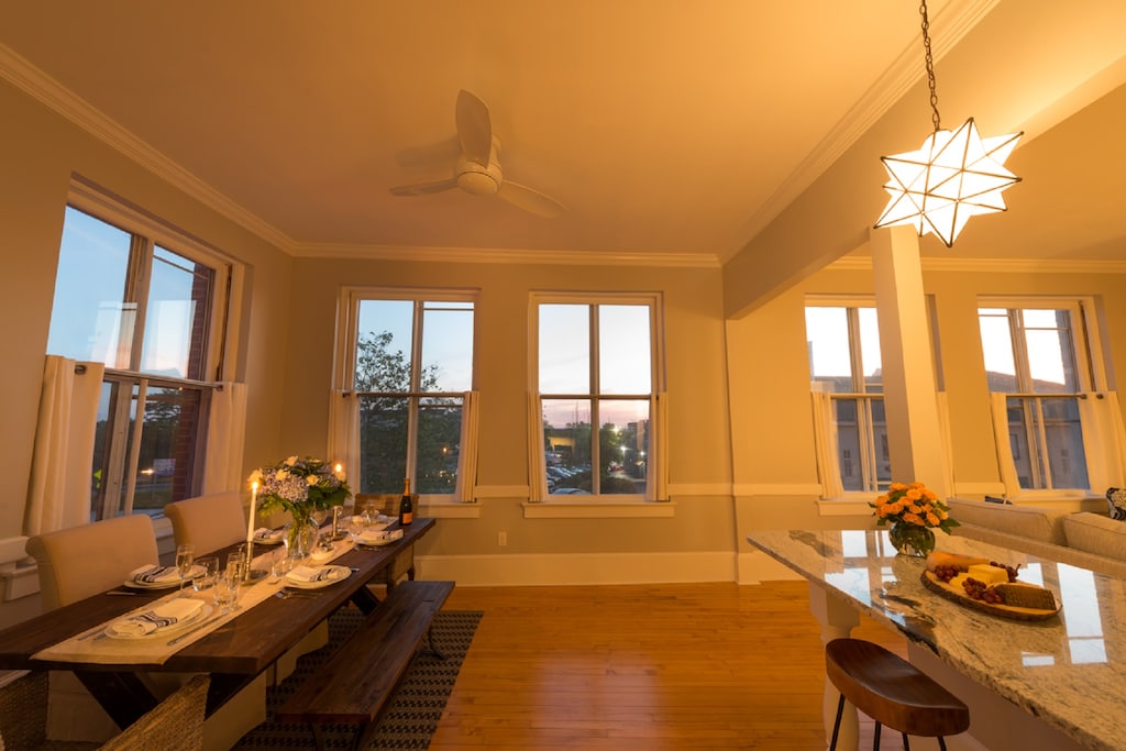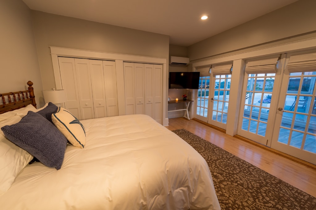 This two bedroom Loft is in a charming building, dating back to the 1800’s! Cathedral ceilings and large windows accent the main floor living and dining area. The Loft’s first floor features a fully equipped kitchen, living room with a queen size sofa bed, dining room, bathroom and one bedroom with a king size bed. On the second floor is a master suite with a king size bed, spa like bathroom, kitchenette and private rooftop sun room and deck. Watch the sunset from the roof deck and see the ships sail in the harbor.
