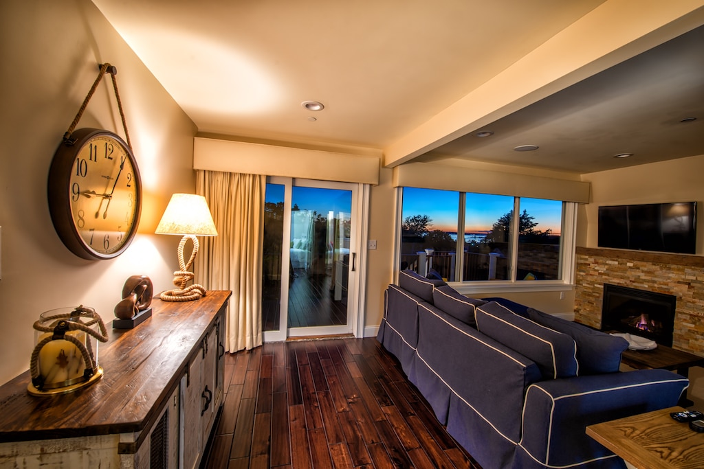 This Loft offers visitors an experience like none-other. This residence features access to a large rooftop deck with sweeping views of Newport Harbor and the Newport Pell Bridge. In addition, there are two decks off of each living space. The first level features a kitchen, dining area, living room and a bedroom with king size bed and en-suite bathroom. Upstairs, there is a second living area with fireplace and extraordinary harbor views as well as two more bedrooms each with a queen size bed and en-suite bathroom. Please note, several exterior stairs are required to get to the third floor entrance of this Loft.