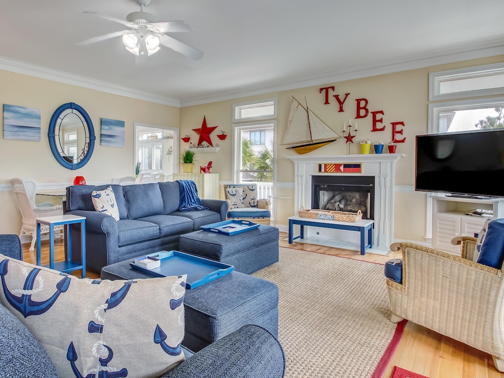 Almost Heaven really is heaven if you’re looking for Tybee vacation rentals that can fit the whole family. This very welcoming property can accommodate up to 12 guests with ease. The home has four bedrooms, three bathrooms and living space galore! Guests who stay at Almost Heaven have access to a resort-style private pool. This property also has its own pool and hot tub. Almost Heaven is one of the rare three-story Tybee vacation homes available. Let’s go floor by floor to discover the charm of this family-friendly beach rental in Tybee Island.