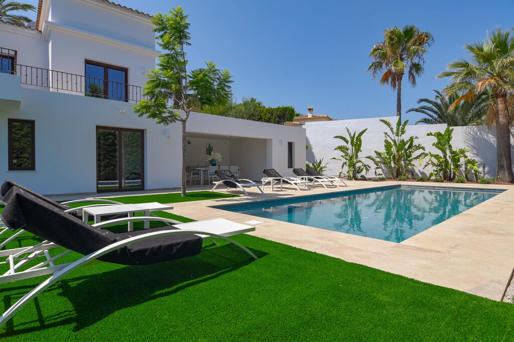 Modern and luxury villa in Moraira, on the Costa Blanca, Spain with heated pool for 6 persons. The villa is situated in a coastal area, close to restaurants and bars and shops and at 1 km from the beach. The luxury villa has 3 bedrooms, 3 bathrooms and 1 guest toilet, spread over 2 levels.