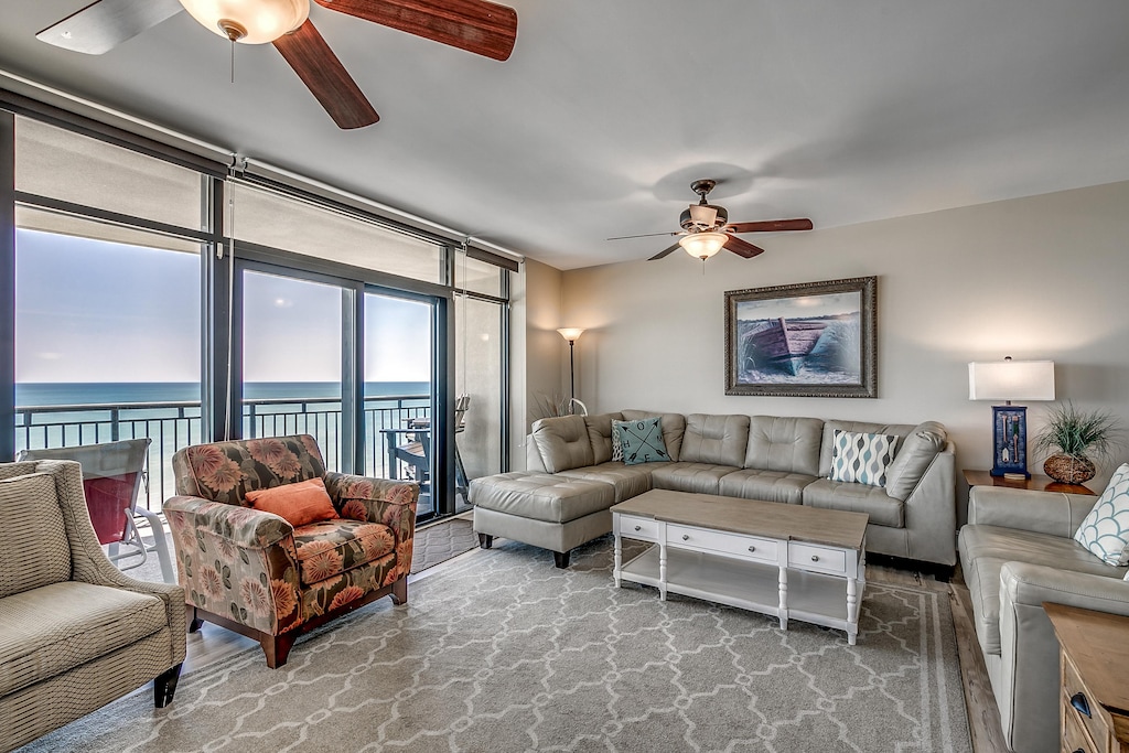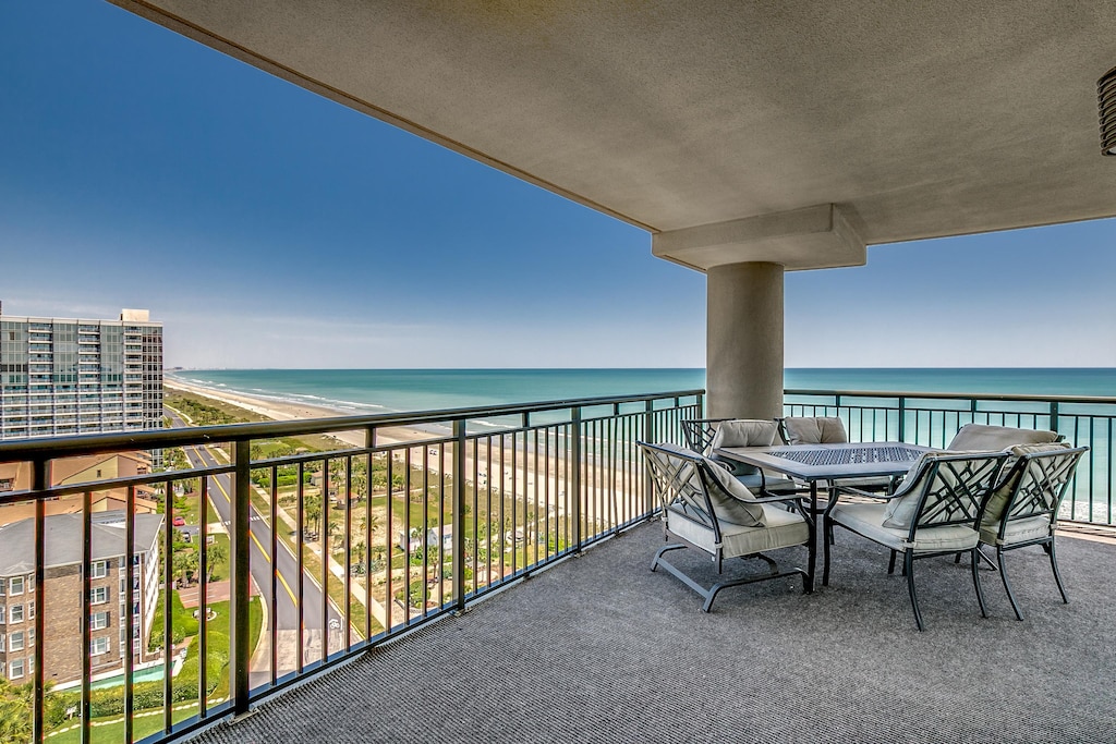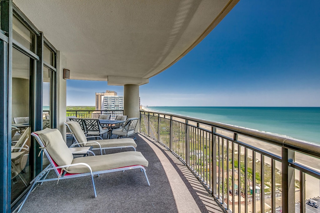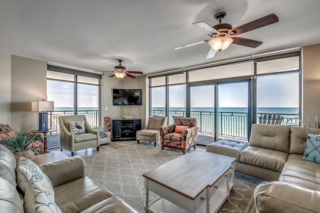 South Wind resort is located in the heart of the Grand Strand in a quiet family oriented section of the beach. This 4 bedroom penthouse suite on the 14th floor is oceanfront and offers spectacular views of the blue Atlantic. This condo offers an oceanfront master bedroom with queen bed and access to the huge oceanfront wrap around balcony. The master bath offers granite counter tops, double vanities, a large Jacuzzi tub, a separate shower and a walk-in closet as well as tile flooring. The second room offers a queen bed, the third room offers a queen bed and fourth bedroom offers two twin beds. Other features include flat screen TVs, full sized washer and dryer, and fully equipped kitchen with granite countertops, this condo creates a large and spacious stay for you and your guests. Activities on site include the indoor and outdoor pool complex which includes a lazy river, 2 pools, 4 hot tubs and children’s splash pool all overlooking the beach along with a fitness center and tanning lawn. • Master Bedroom - 1 King Bed • 2nd Bedroom - 2 Twin Beds • 3rd Bedroom - 1 King Bed • 4th Bedroom - 2 Queen Beds - Luxury Linen package included! - This is a non smoking building - No motorcycles, trailers, or pets allowed on the premises.
