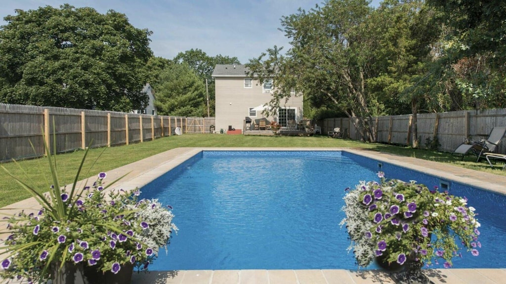 Deck/Patio (Uncovered), Lounge Chairs (4 Chairs), Patio Furniture (Table, Chairs, Umbrella), Grill (Gas), Outdoor Shower, Fence Around The Yard, Private Pool (Outdoor, Heated)