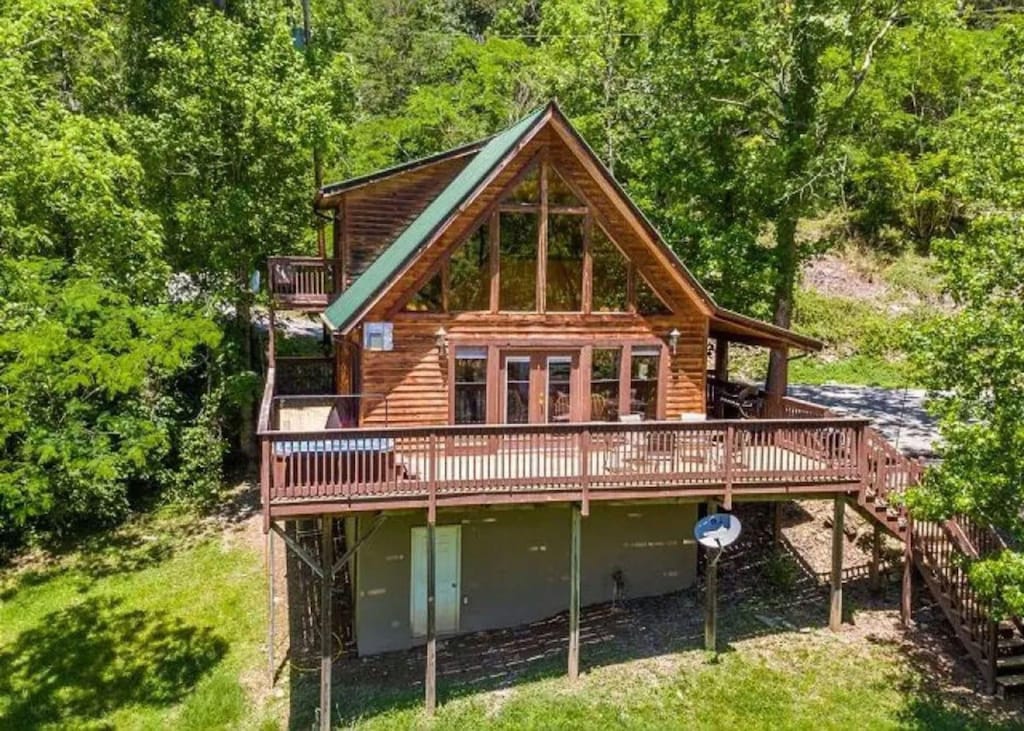 Relax in this charming 2 bedroom cabin, nestled on the Little Pigeon River. The floor plan is simple and quaint with a rushing smoothing swimmin’ hole.