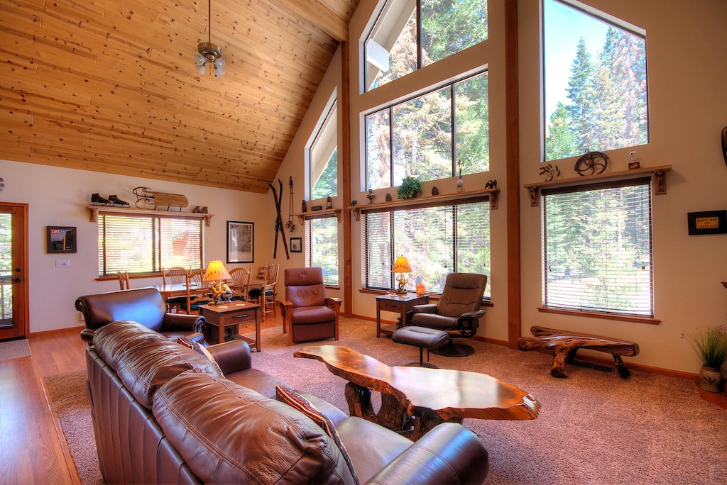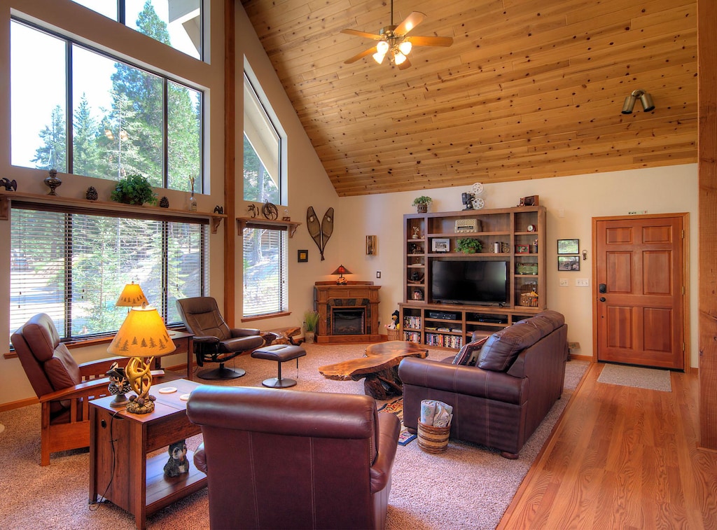 Welcome to our home!!! It’s a spacious 3 bedroom, 2 bathroom home with AIR CONDITIONING! We have convenient parking, enough for 3 cars. Enjoy your stay as you sleep comfortably in the master with a king memory foam bed, which has its own private balcony upstairs. The other two bedrooms have queen mattresses for your comfort. We also provide a full-size z-bed and 2 fold out cushions! Enough to sleep, 8 people! There is a TV in the master and a large screen in the family room with a VCR/DVD with plenty of movies to choose from, an extensive VHS movie collection. We have Direct TV and a phone for local calls. There are 2 full baths and a washer and dryer. We also have a Weber BBQ out on the main deck with a picnic table for outside dining as you enjoy the beautiful scenery! Our kitchen is completely updated and is fully stocked with spices, Chocolate mix, coffee, tea, and sugar! There is a toaster, blender, coffee maker and a 5 burner gas stove as well! This cabin also has air conditioning which will be nice to use during the summer. Please enjoy our open floor plan which was decorated with love and is so comfortable and clean you will never want to stay in a hotel again! Happy vacationing!